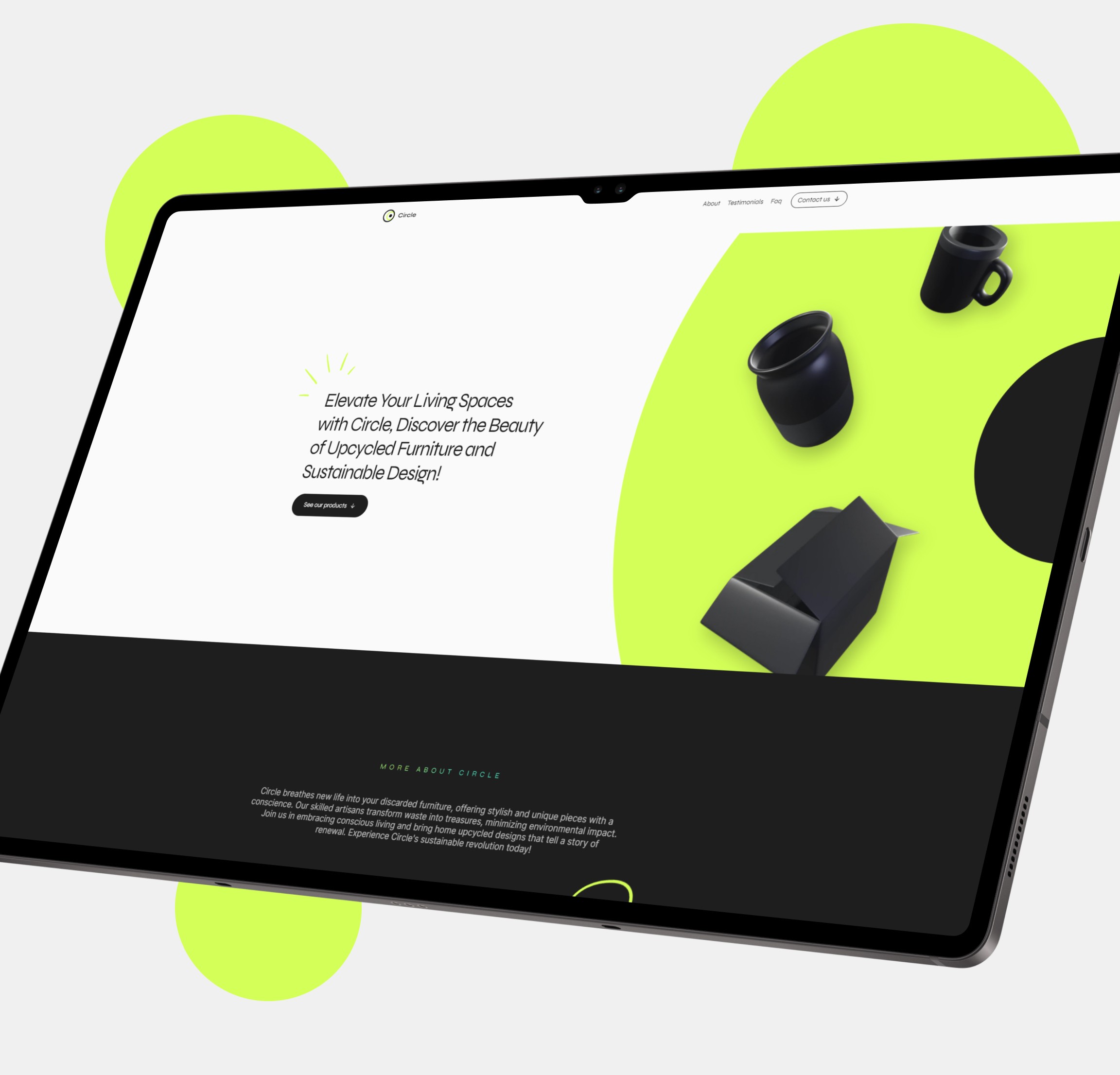 Circle est un template de landing page pour les entreprises. J'ai d'abord élaboré un design sur Figma pour ensuite le développer sur Framer. Le site a pour thème des formes rondes embarquant des animations circulaire. Il se veut impactant, efficace et simple pour permettre à n'importe qui d'y modifier le contenu à sa guise, tout en proposant une animation originale.