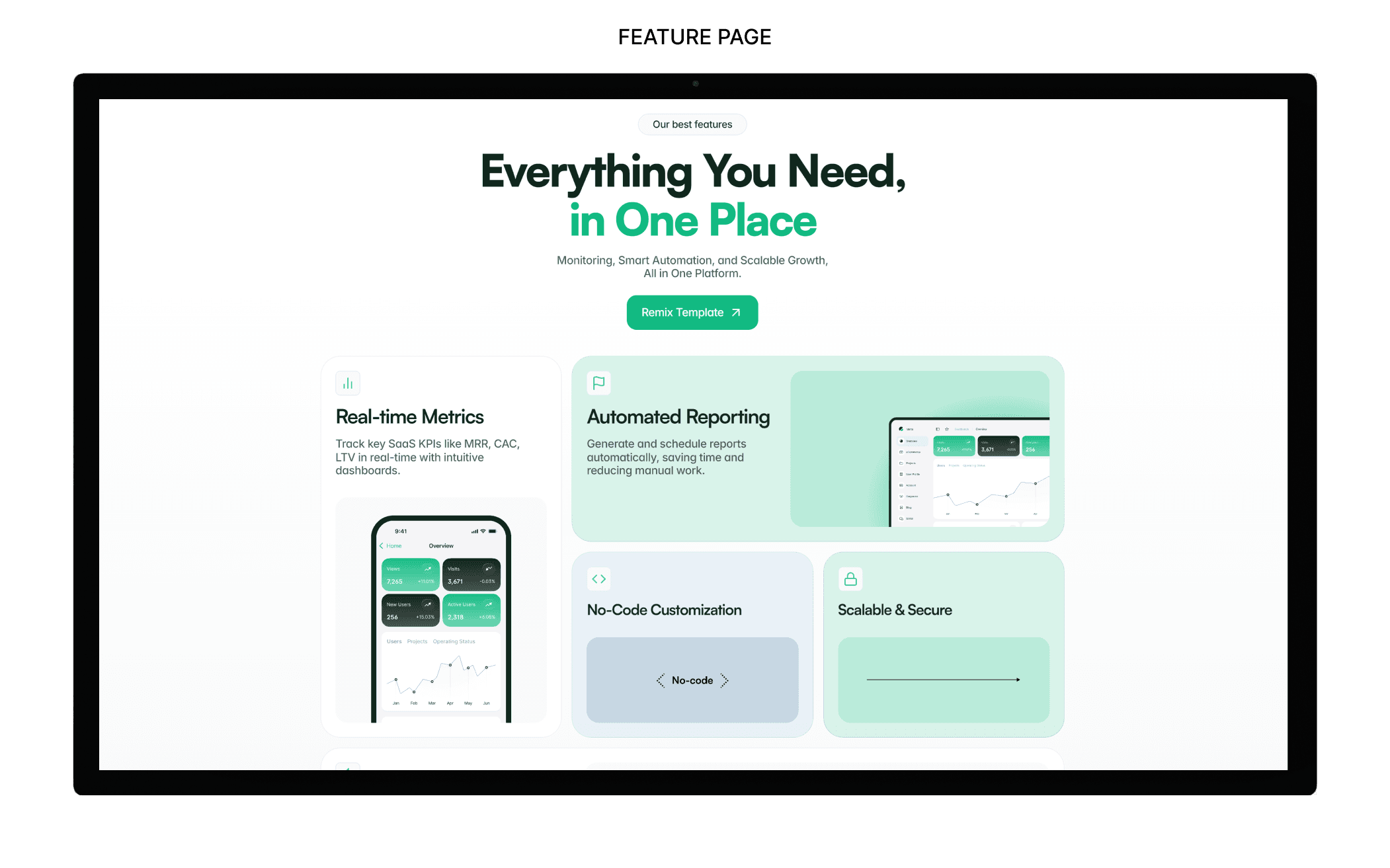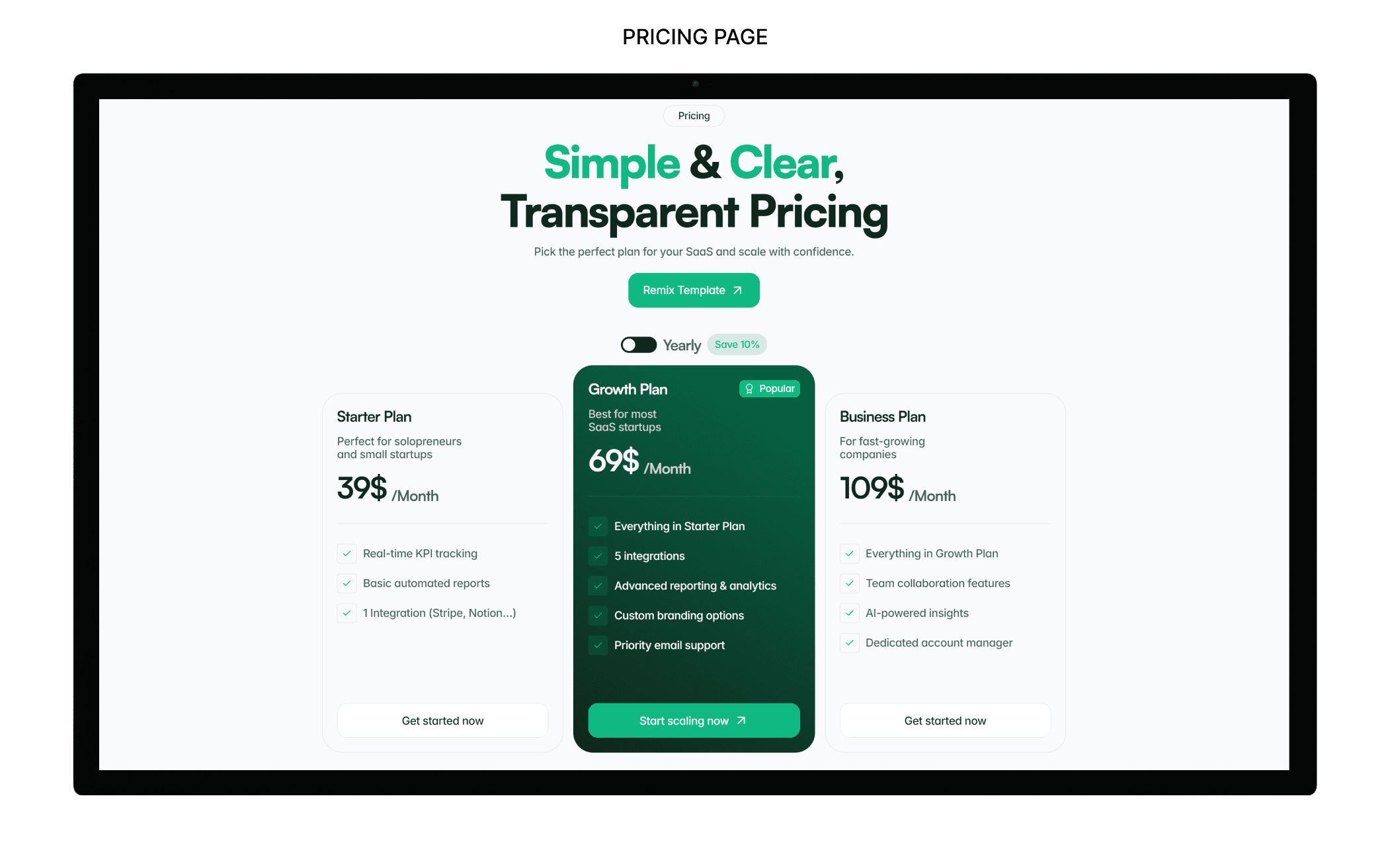Template de landing page pour SaaS réalisé sur framer disponible sur le marketplace