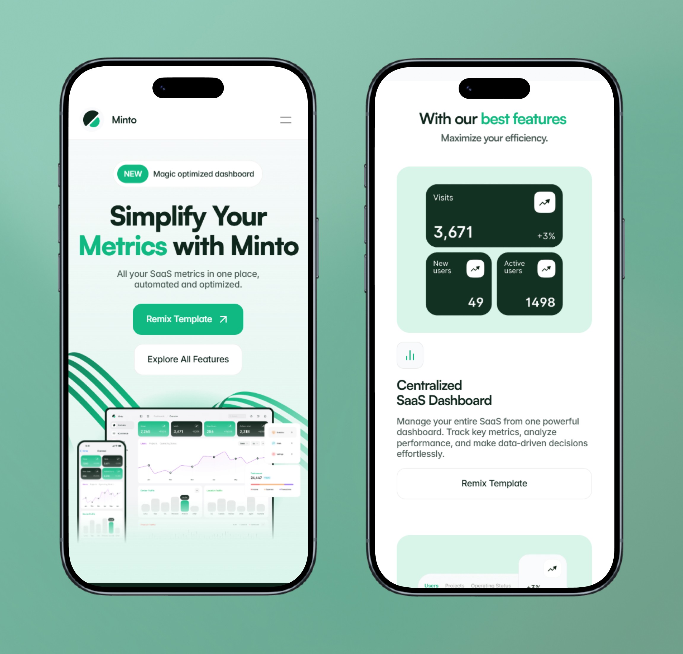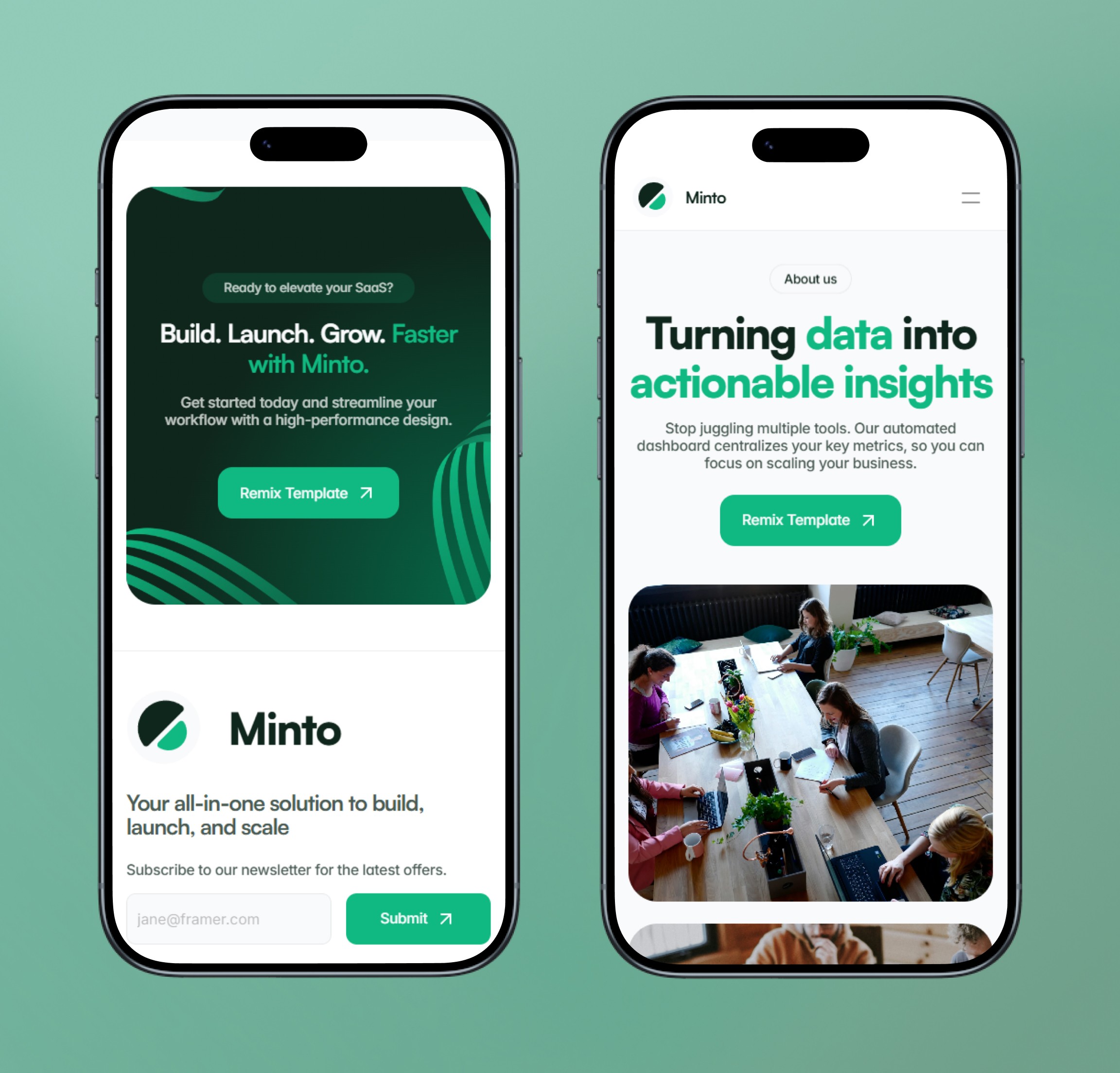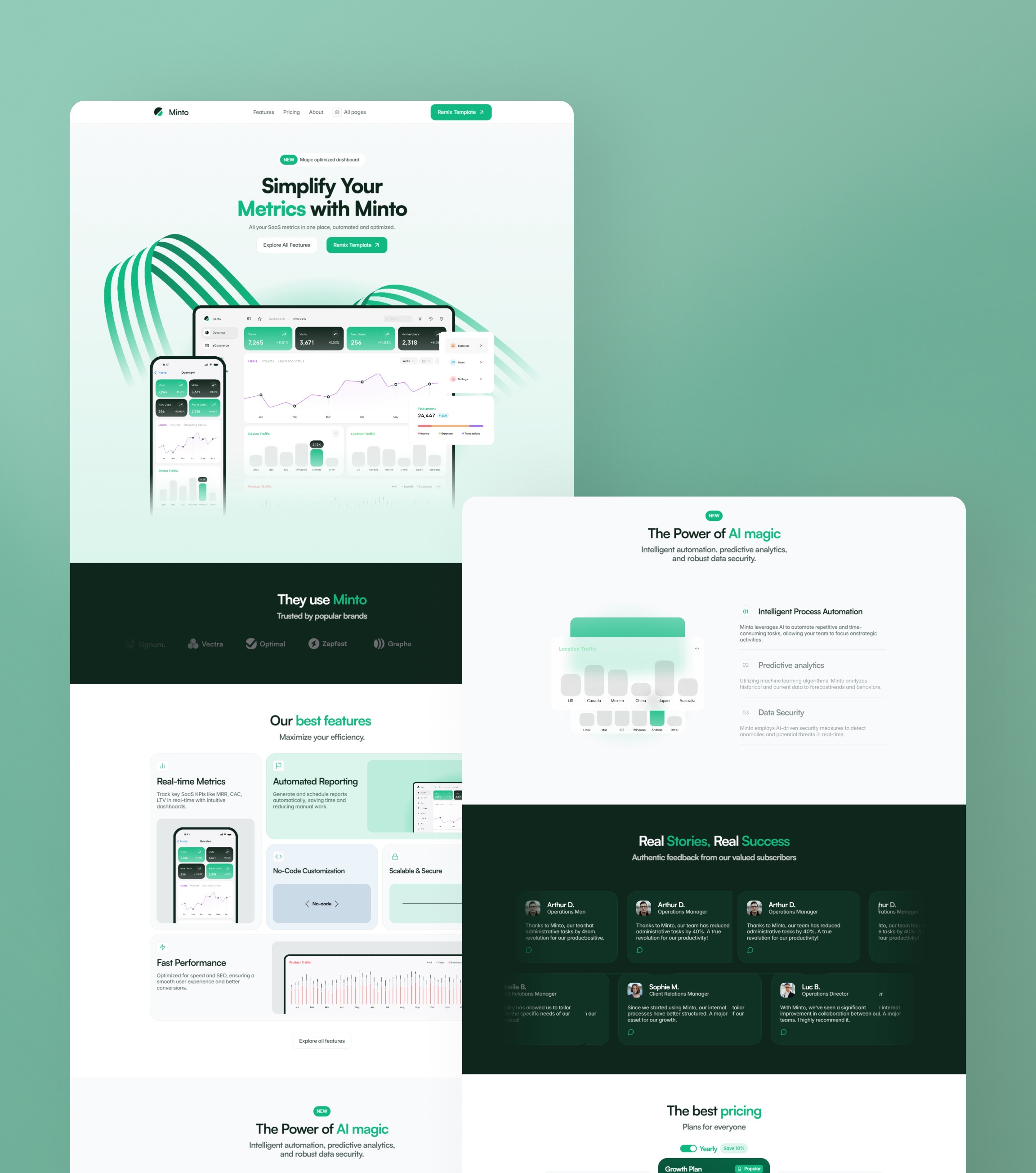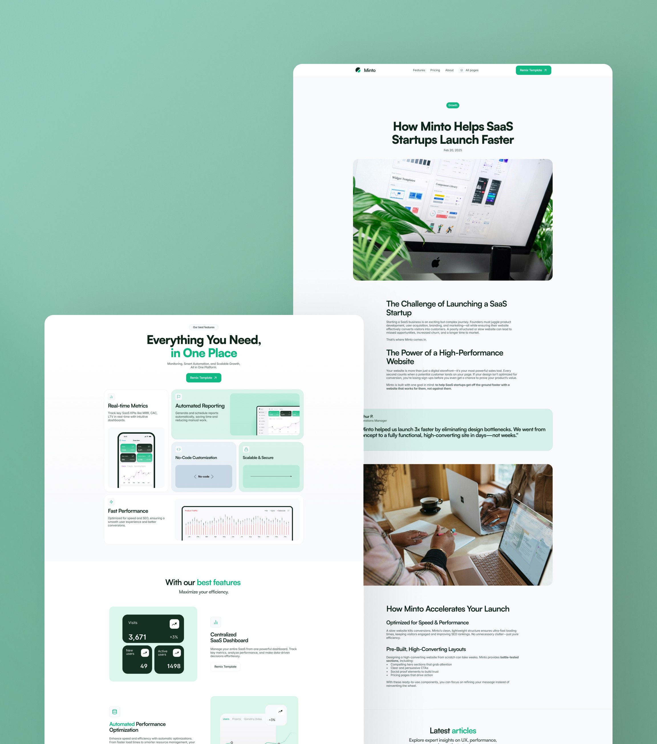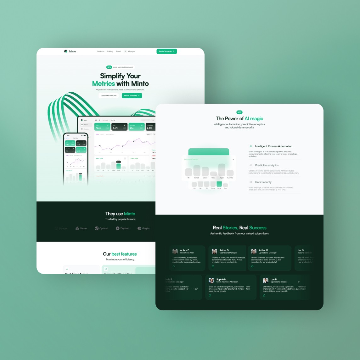 Minto est un Template Framer conçu pour optimiser l'engagement utilisateur et offrir une expérience intuitive. Son design met en valeur votre entreprise SaaS. Alliant esthétique et performance, il est une landing page à fort taux de conversion.