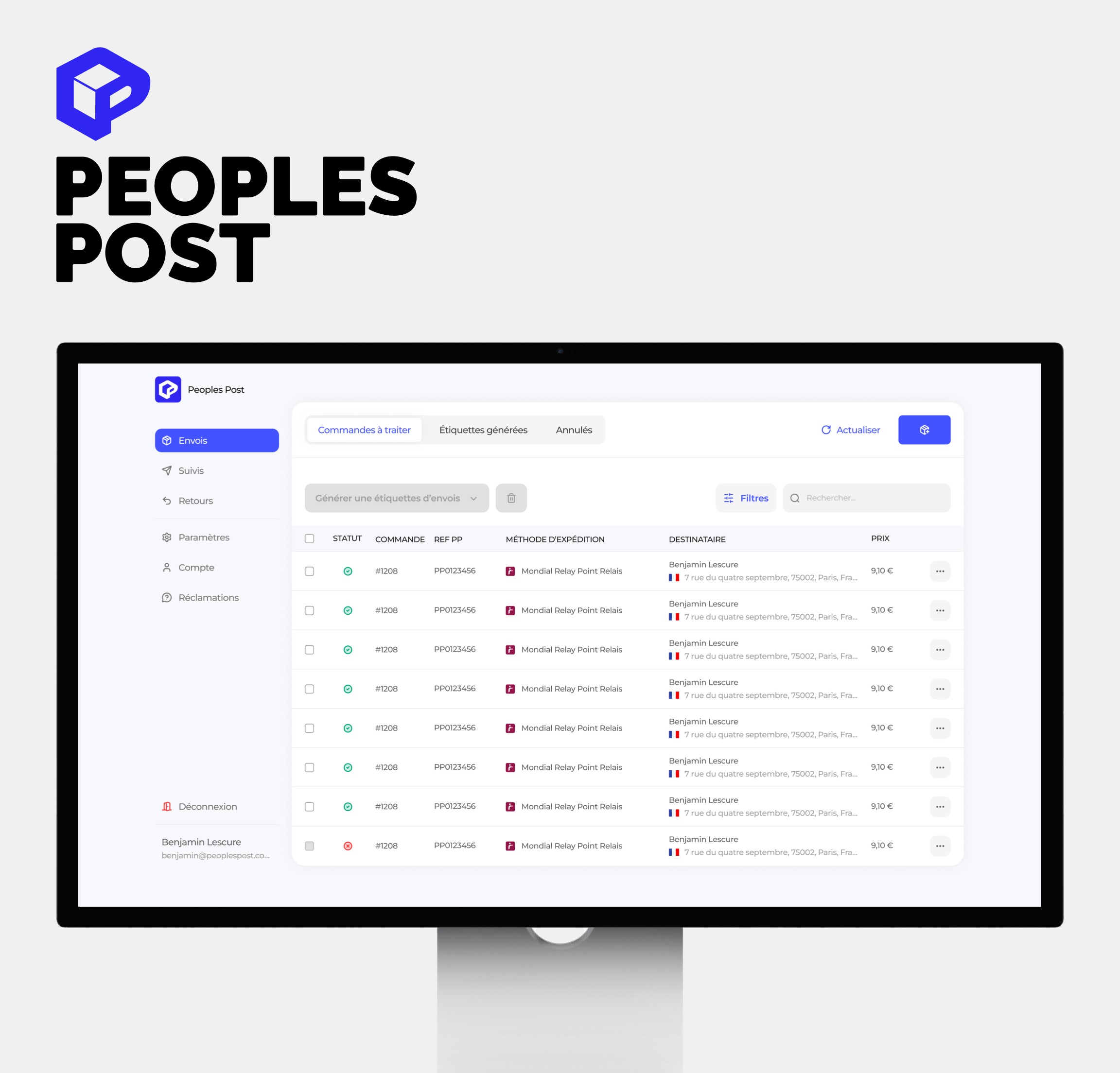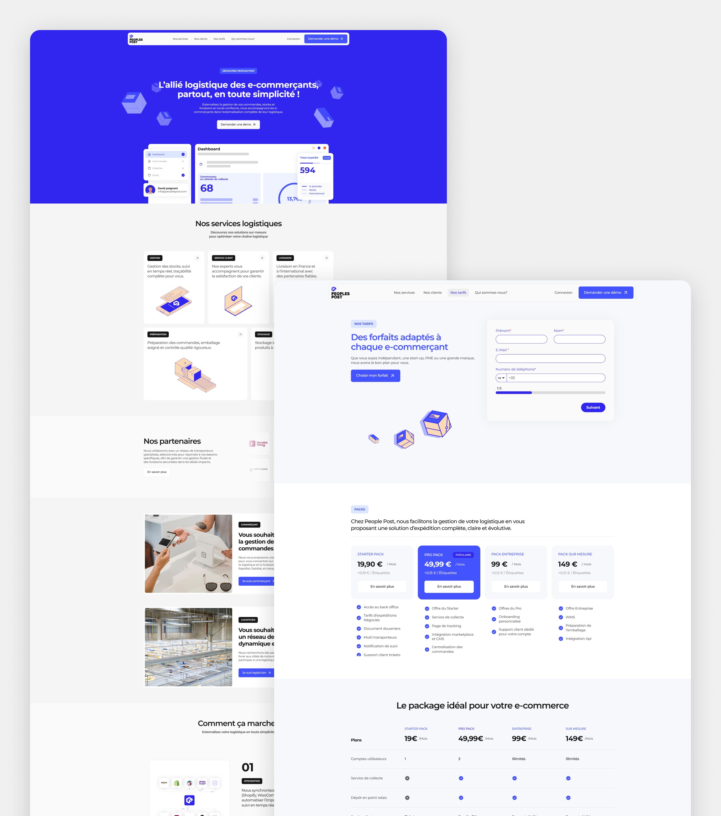 Refonte du site et du dashboard de Peoples Post, une solution de logistique pour traitement de colis