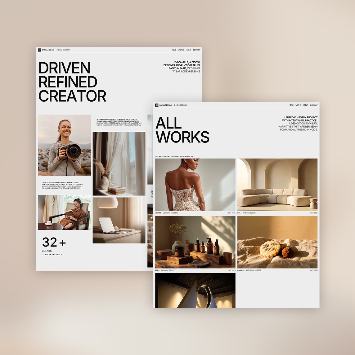 Vanila est un modèle de portfolio pour photographes et designers. Son esthétique minimaliste et chaleureuse, associée à un système de gestion de contenu performant pour les vidéos et les images, transforme vos projets en un récit visuel raffiné. Entièrement responsive, rapide et facile à personnaliser.
